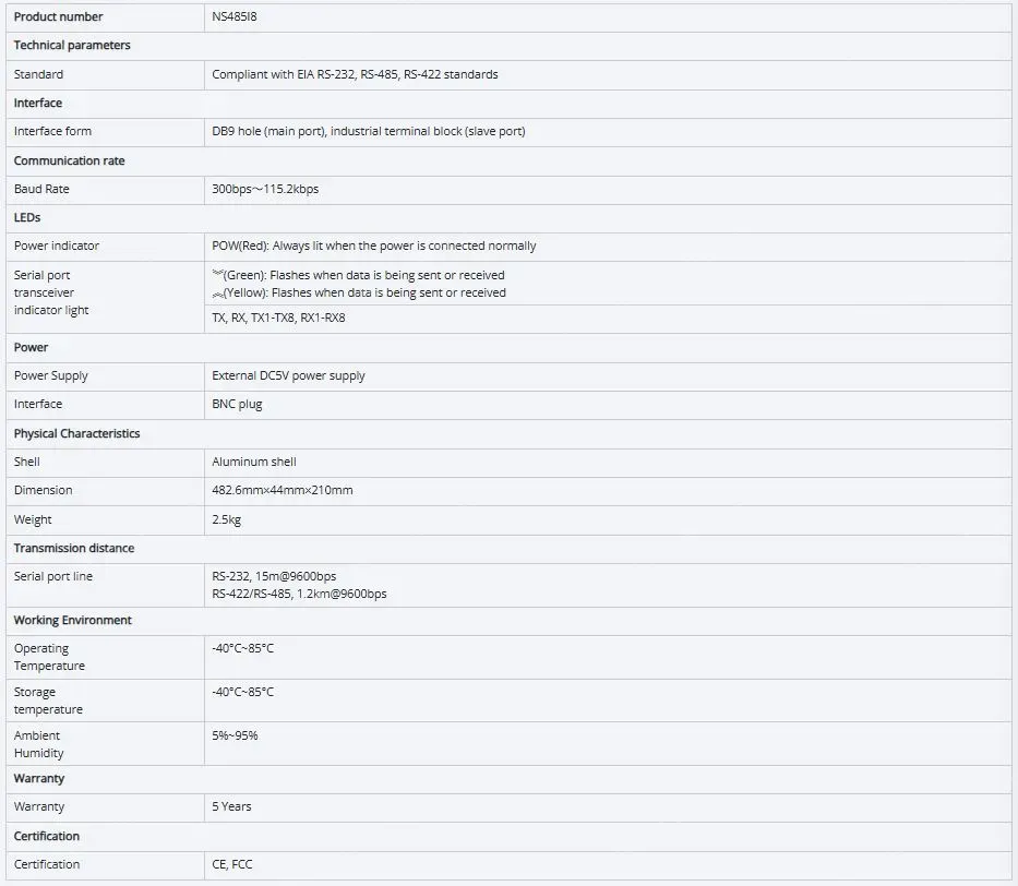 • 1 Port RS232/485/422 To 8 Ports RS485/422 Passive Isolated HUB