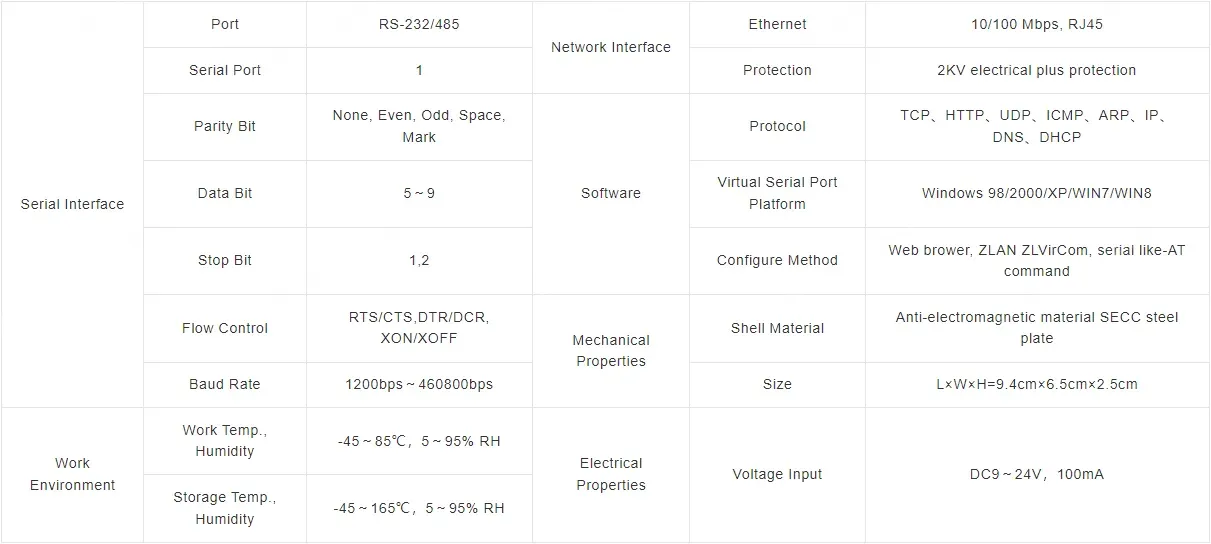 - 3) ZLAN5142 is the first type of full duplex, continuous, and low cost serial server in industry. It support simultaneously converting between Ethernet &Serial with large bulk of data with no pause, and also no data is lost.