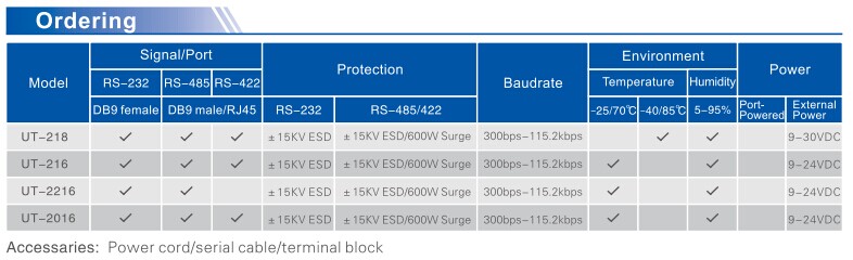 - Standards: RS-232, RS-485, RS-422 TIA/EIA
